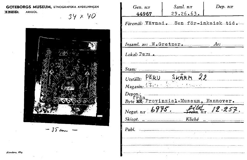 • Katalogkort ur Världskulturmuseets arkiv.