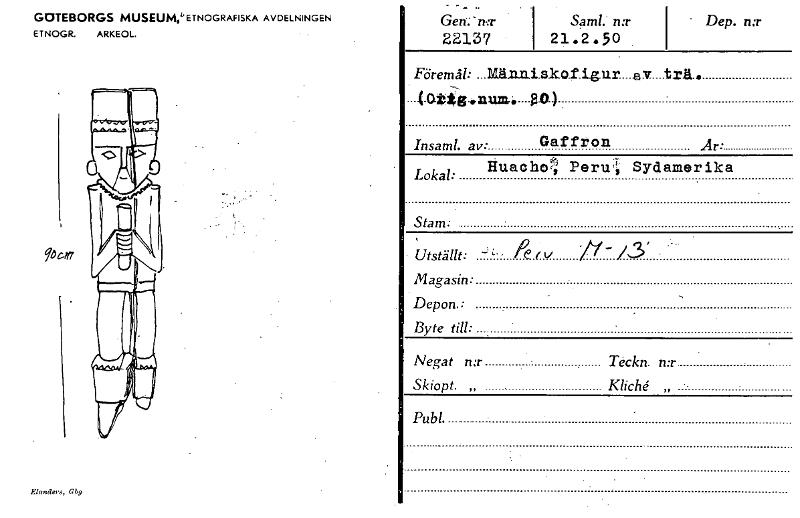 • GOTEBORGS MUSEUNCETNOGRAFISKA AVDELNINGEN ETNOGR. ARKEOL. Mandel., Gbg Gen; nr 22137 1 Samt; n:r 21.2.50 • Dep. n:r Föremål: ...Människatigrur _av trä., --tatig..nultb.. po) Insaml. av- Gaffron År L... Visa hela