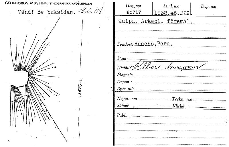 GOTEBORGS MUSEUM, ETNOGRAFISKA AN%6ELNINGEN Vänd ! Se baks idan. Gen,n:o Sam!. n:o I Dep. n:o 60717 1938.45.2291. Zuipu. Arkeol, föremå Fyndort: Huacho ,Pe Stam • Utställt Age,t/ P27 Magasin: Depon.: Byte till: Negat. n:o Teckn. n:o Skiopt. „ „ Publ • [ocr]