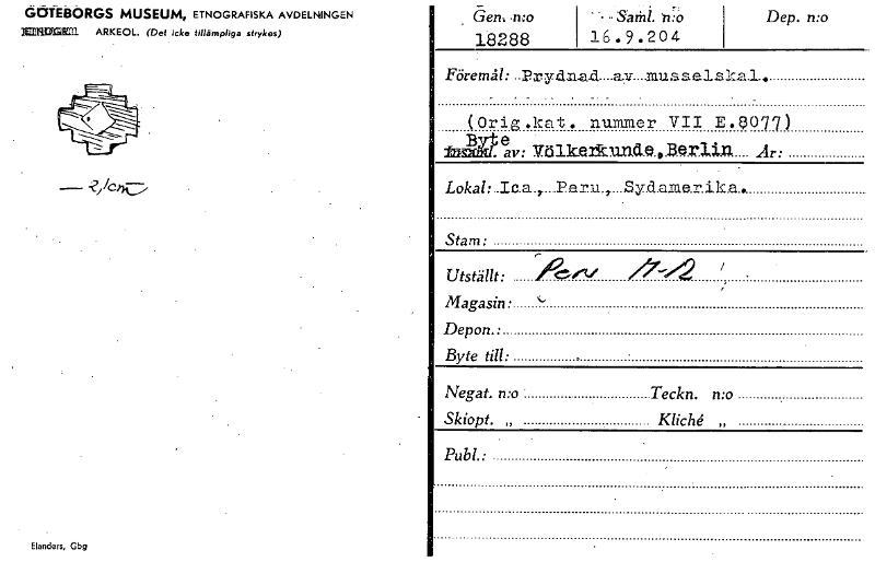 GedEBORGS MUSEUM, ETNOGRAFISKA AVDELNINGEN 161111212MEl1 ARKEOL. (Det icke tillämpliga strykes) Elanders, Gbg . Geni mo 18288 ' -- -Sarill. n:•6 16.9.204 Dep. n:o Föremål: ..Pxydn---a:sr....musse1sica...