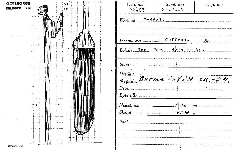 ,-+- - , AR I " 1. • GOTEBORGS waufen ARK I Gen. mo 22106 Samt. n:o 21.2.19 Dep. n:o Föremål: .P.a.dde.1.. , 1 I Insaml. av: • Gaffrow. Ar: \ Lokal: le?. , Peru, Sydamerika. k Stam: ' \ .. ' r - ...