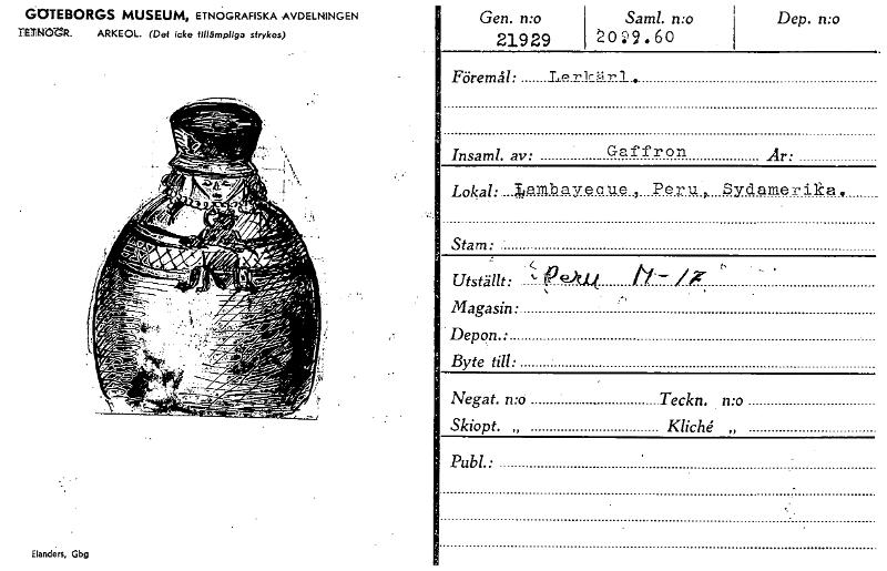 • GOTEBORGS MUSEUM, ETNOGRAFISKA AVDELNINGEN TEINCYCR. ARKEOL. (Det icke tillämpliga strykes) Elanders, Gbg Gen. n:o 21929 Sam!. n:o 209.60 Dep. n:o Föremål: Le-ok-Ur 1 .. Insaml. av: Ge.ffron Ar: Loka... Visa hela