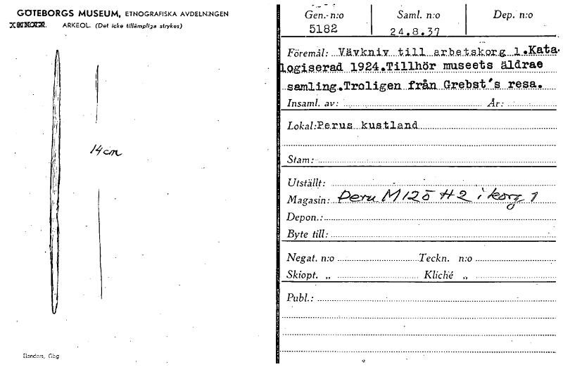 GOTEBORGS MUSEUM, ETNOGRAFISKA AVDELKNGEN X WICOM. ARKEOL. (Det icke tillämpliga strykas) ElJnders, Gbg Gen.- n:o 5182 Sam!. n:o 24.8.37 Dep. n:o . Föremål: ...31..ä.v.kniv t 1.1.1 .ar b.e.U.k.Qx. g ....Visa hela