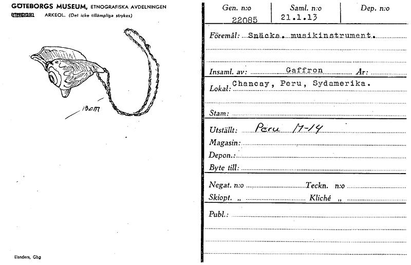 • GOTEBORGS MUSEUM, ETNOGRAFISKA AVDELNINGEN Inatffla ARKEOL. (Det icke tillämpliga strykas) Elanders, Gbg Gen. n:o 22(25 Saml. n:o 21.1.13 Dep. n:o Föremål: ....Snäck.a.....rau.s.ik.i.netrum.ent.. Insa... Visa hela