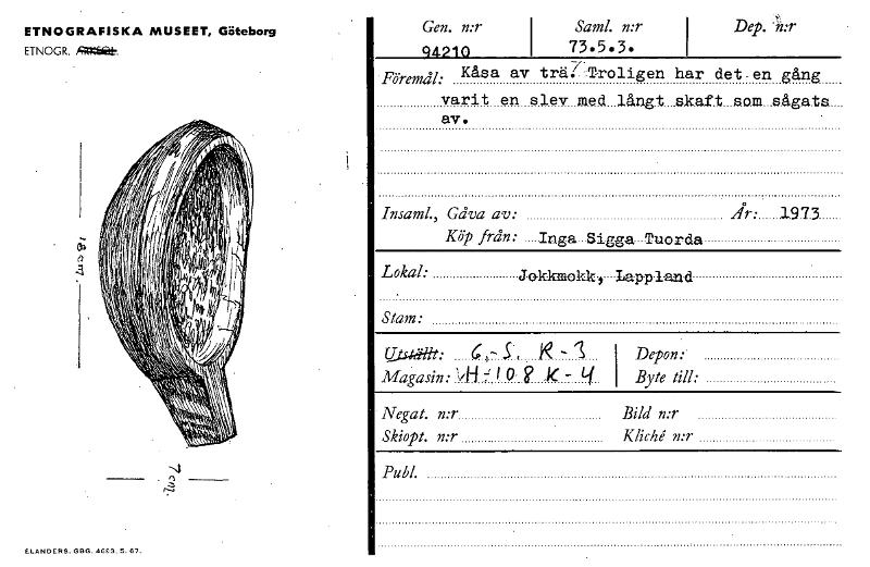 • Katalogkort ur Världskulturmuseets arkiv.