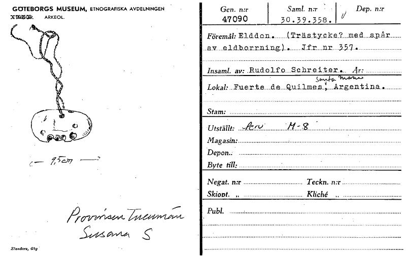 • GOTEBORGS MUSEUM, ETNOGRAFISKA AVDELNINGEN XMISant. ARKEOL. Gen. n:r 47090 Samt. n:r • 1 30.39.358. , Dep. n:r I/ Föremål: Elddo.n.. ( Träs:tycka.? m.e.d s.p.ilr ..av eld.b.o.r.rning.)... J.f.r. _nr.... Visa hela