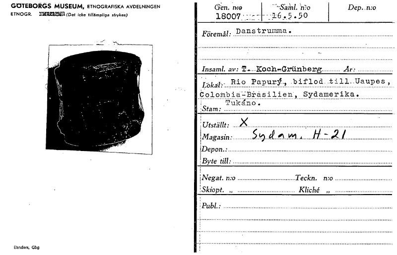GCITEBORGS MUSEUM, ETNOGRAFISKA AVDELNINGEN ETNOGR. ink~ (Det icke tillämpliga strykas) Elanders, Gbg Gen. wo 18007 21:17 --Såja 'h'io - - ._..:6 _•.5 • 5° Dep..n:o Föremål: Dan.s trumma . ..,, Insaml. av: T....Xoch,Griinherg År: Lökål.:_ Rio Papur . .biflod..till_.Uaupes , boloMbia.--:Brasilient Sydamerika. Tuka'no . Stam: Utställt: X Magasin- S (9 ct ox tAi , / Depon.• Byte till: Negat. n:o Teckn. n:o Skiopt. „ Kliché „ Publ.: , ; , i [ocr]