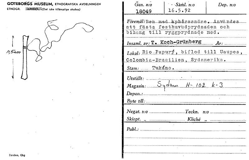 GOTEBORGS MUSEUM, ETNOGRAFISKA AVDELNINGEN ETNOGR. nA31M51.112(Det icke tillämpliga strykes) Elanders, Gbg n. .n: 18049 ' —Såra mo 16.5.92 Dep. n:o Fören! i Be_h_mad....årp h år s z nb.r..a.....A nvä.nrle s att fästa feSthuvUdprydnaden och bihang till ryggprydnad.e med. Insaml. av: 7. roch-Griinberg Ar: Lokal: _Rio purl , biflod till Uaupes , Colombia-Brasilien, Sydamerika. Stam: Trukålu. Utställt: ._ .. . Magasin: S bria~ H- lor,t k- 3 Depon.• • Byte till: Negat. n:o Teckn. n:o Skiopt. „ Kliché Pub 1.: [ocr]Stäng