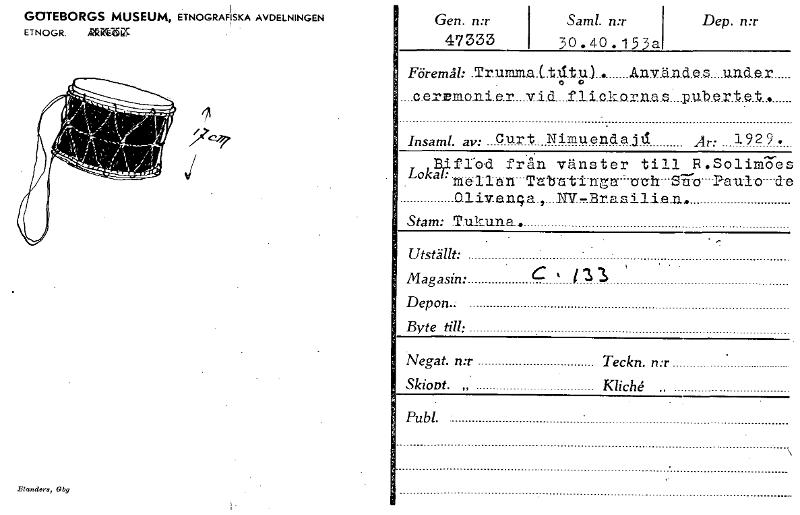 • Elds, Gbg Gen. n:r 47333 Sam!. n:r 30.40.153a Dep. n:r Föreing:.Trumma.(tlitn). Anv:ån.clunde.r 0 0 ....c.eriemaniar visl .flicho.rwa.s' pub.e.rt ...... Insaml av: Curt. Nimuendajd A, 1929. Loklk ... Visa hela