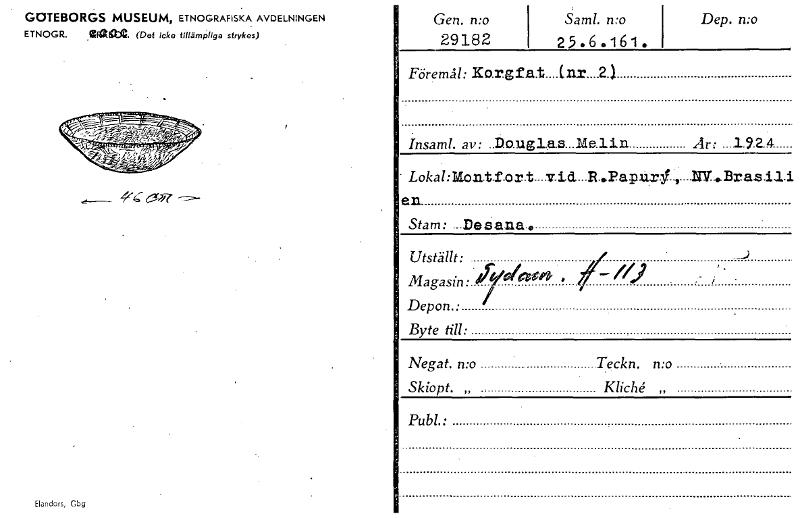 GOTEBORGS MUSEUM, ETNOGRAFISKA AVDELNINGEN ETNOGR. .afiatloit (Det icke tillämpliga strykes) 0,77 Elanders, Gbg Gen. n:o 29182 Sam!. n:o 25.6.161. Dep. n:o Föremål: Ko.rgfa.t....(nr 21 Insaml. av: ..Daugle.s...11e.1in Är: 1.9.24 - LokablIontf_oxt___Inid...11..Papnx4-..,___IIV.Bras.i.1.3 en Stam: ...Desana.. Utställt: ......) Magasin: «d'a" i 7-#,./ . ,_ , • Depon.: . Byte till: Negat. n:o Teckn. n:o Skiopt. „ Kliché „ Pub!.: [ocr]