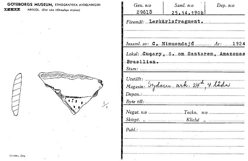 GOTEBORGS MUSEUM, ETNOGRAFISKA AVDELNINGEN XXX= ARKEOL. (Det icke tillämpliga strykes) Elenders, Gbg 1 Gen. n:o i 29615 i Saml. no ' 25.14.190h Dep. n:o i 1 Föremål: ....Le.r.lar.1.agment , , , , . In...