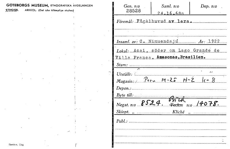 • GOTEBORGS MUSEUM, ETNOGRAFISKA AVDELNINGEN -EIN'OGR. ARKEOL. (Det icke tillämpliga strykes) Elanders, Glag Gen. n:o . 28528 'Saml. n:o 2_4j_6_,, 6Sn Dep. n:o . Föremål: ..F.U.å.1.1-1.u.v.ucl...ay....l... Visa hela