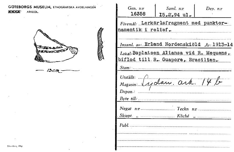 GOTEBORGS MUSEUM, ETNOGRAFISKA AVDELNINGEN mut ARKEOL. — /3 Cflu Gen. n:r 16358 1 Saml. n:r 15,2-4.4 ul,... Dep. n:r Föremg: T_Eerkärlsfragment med p.unktor-- namentik: i ralilef.„ Insaml. av: Briand Nordenski41(1. Ar:.1 ..... —1X Loka/..13.0platsen Allansa vid. R.. -Mequens ,_ biflo.d till. R.. Guapo.re.jr. Brasilien.- Stam:- Utställt: Magasin: 4,1 01-4°4' , 0"4"12--- i Y ( Depon.: Byte till: Negat n:r Teckn n:r Skiopt. „ KlicU „ Publ. [ocr]