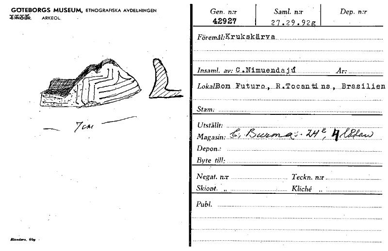 GOTEBORGS MUSEUM, ETNOGRAFISKA AVDELNINGEN ZXIUX2. ARKEOL. • Gen. n:r 42927 Samt. n:r 27.29.92g Dep. n:r 7,4 , Föremg:Kruk.s.kärve. Insaml. av: 0..,Nimu.e.nd.a År: Stam: Utställt: Magasin: /695.0pea...