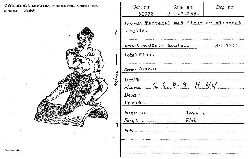 • • GOTEBORGS MUSEUM, ETNOGRAFISKA AVDELNINGEN ETNOGR. A76K4a.. Gen. n:,r Saml. n:r Dep. n:r 50973 31.48.239, Föremål: .......... med figur av glaserat lexgods. Insaml. Ar• 1931, Lokal: Stam: krneser UtställtJ Magasin: Depon.: Byie till: Negat n:r Teckn n:r Skiopt. „ Kliche „ Publ. Et~,G1,9 [ocr]