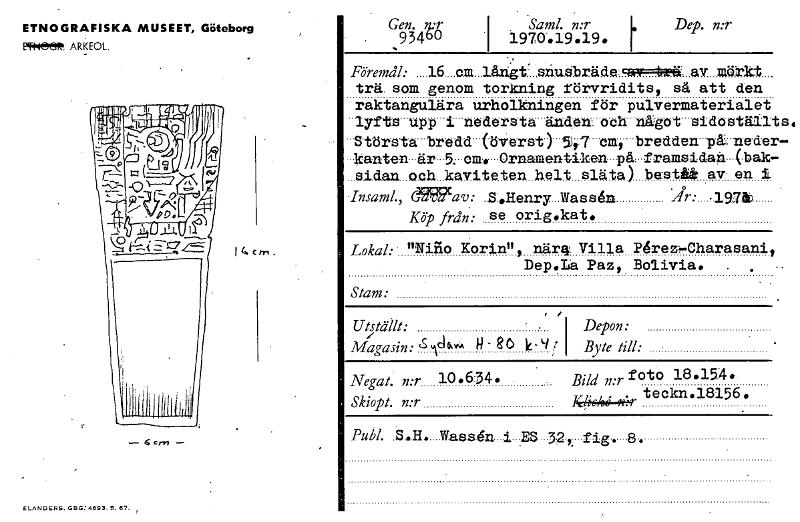 ETNOGRAFISKA MUSEET, Göteborg ET4~. ARKEOL. 1Cacrn. — 6 cm -- ELANDERS. GBG:4693. 5. 67. Gen. 4:r ,934b0 I Saml. n:r[ Dep. n:r 1970-.19.19. , Föremål: ....16....om...1årigt...shuelrädesan~,.av mökkt.... trä. som genom torkning rörvridits, så att den raktangulära urholkningen för pulvermaterialet -lyfts-upp ''' 1-nedorsta änastr-oth-något-sidostälI -Största bredd* (överst) 547"cm, bredden-pk.nede: kanten är. 5. •om•••••Ornamentiken-på-framsidan•••(•bak. .si.dan. och..kavitete.n. helt släta.) beste av en 1 .InsamL, d'3257 av: .S:.Henry Wass‘n jr: •197k Köp från: se orig.kat. Lokal:' "Bilo Korinnt närts. Villa PgreD-Charasanii Dep.lia Paz, Bolivia. . . Stam: Utställt: Magasin: 'S \ CI "A N- eö k-9 t I Depon: Byte till: Negat. n:r 10.634. . Skiopt. n:r Bild mr foto 18.15•. teckn.18156. K4411 t1.9" Publ. .S.E. Wass6n i •ES 32 fi 8 . t •g••• • [ocr]