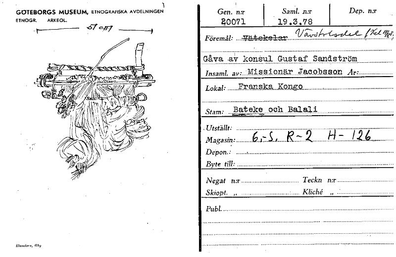 • GOTEBORGS MUSEUM, ETNOGRAFISKA AVDELNINGEN ETNOGR. ARKEOL. ‹Sic.-177 Gen. n:r 20071 I Sam!. n:r ' 19.3.78 Dep. n:r Föremål: ~kelar Va4r--11-1--(----2.-ve-4-e- pra /7 / Gåva aV konsul Gustaf Sandström ... Visa hela