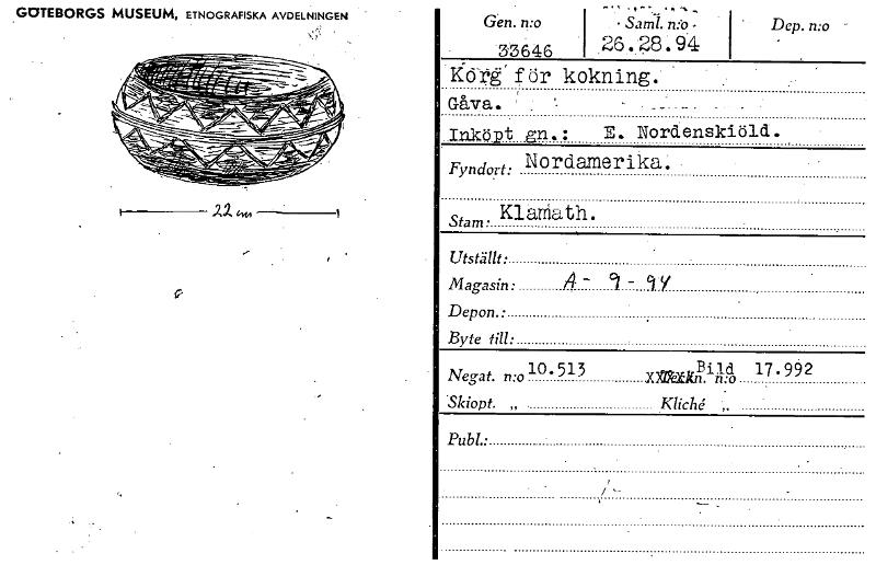 • GOTEBORGS MUSEUM, ETNOGRAFISKA AVDELNINGEN Gen. n:o ,.., .. - .. ' '• ''' - • Sara n:o - - Dep. n:o 33646 :26428.94 k'öfg'för kokning. Gåva. Inköpt gn.: E. Nordenskiöld. Fyndort: Nordamerika. Klarri... Visa hela