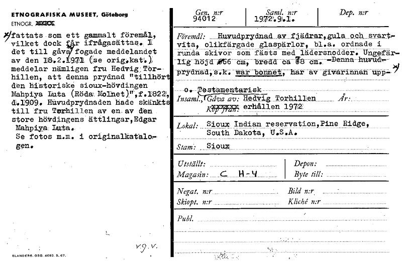 • ETNOGRAFISKA MUSEET, Göteborg UNOW.2~ fattats som ett gammalt föremål, vilket dock'r ifrågasättas. I det till gåvq fogade meddelandet av den 18.2. .9T.1_ (se orig.kat4), meddelar nämligen fru Hedvig,T... Visa hela