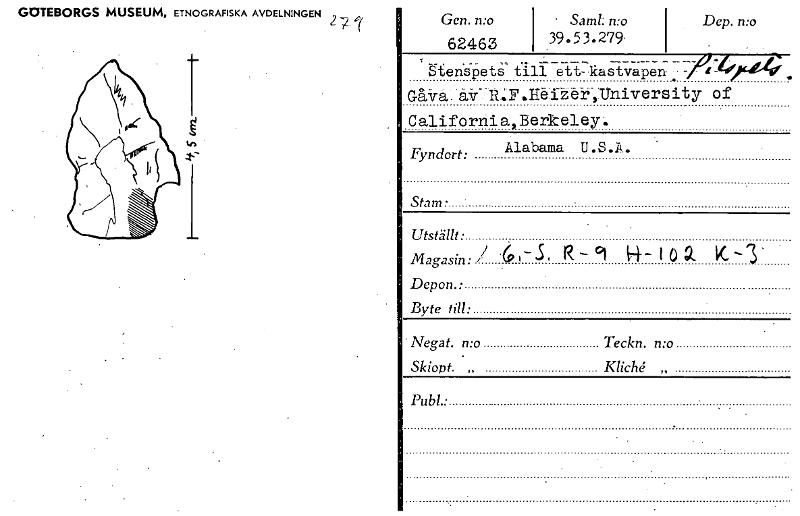 • GOTEBORGS MUSEUM, ETNOGRAFISKA AVDELNINGEN 27.7 Gen. n:o • Saml: n:o 62463 39.53.279. 5-Cen4etj tilletrkastviiiin Gåira a--TR.F.Hit&r.,University of California,Berkeley. Fyndort: Alabama U.S.A. Stam ... Visa hela