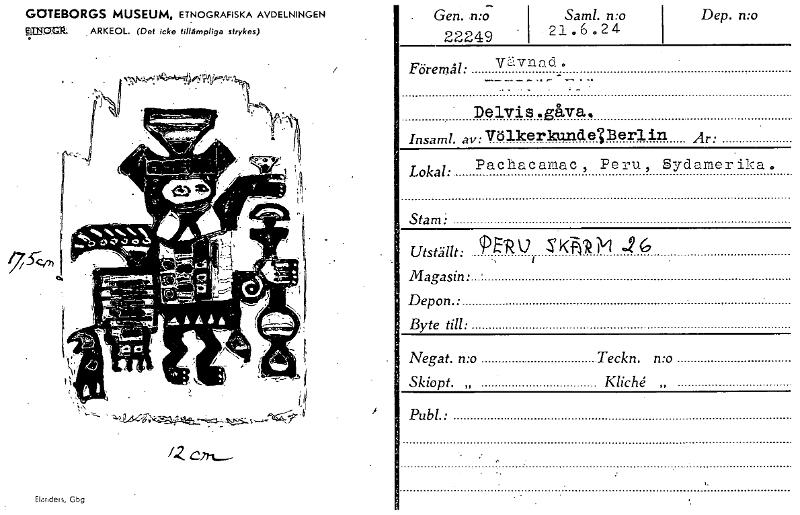 Å GDTEBORGS MUSEUM, ETNOGRAFISKA AVDELNINGEN EfagrOnk. ARKEOL. (Det icke tillämpliga strykas) Elanders, Gbg • Gen. ,n:o 22249 ' Sam!. n:o 21 .6 . 2 4 Dep. n:o FäTmg: -57-vilad° • Delvis.gåva, Insaml. av: VölkerkundelBerlin Är: Lokal: Pachacamac, Peru, Sydamerika. Stam: Utställt: PER u "Kki? ?'i 4 6 i Magasin: Depon.: Byte till: Negat. n:o Teckn. n:o Skiopt. „ Kliché „ Pub!.: . . , . • .. . . ,. [ocr]