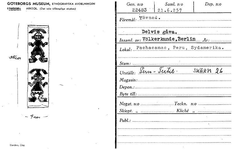 • GOTEBORGS MUSEUM, ETNOGRAFISKA AVDELNINGEN E1- r1 ARKEOL. (Det icke tillämpliga strykas) Fanders, Gbg Gen. -n:o 22483 -' Saml. n:o 21.6.257 Dep. n:o Föremål: 75v n'a d • Delvis gåva. Insaml. av: Völ... Visa hela