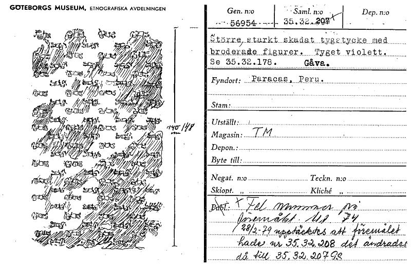 GOTEBORGS MUSEUM, ETNOGRAFISKA AVDELNINGEN rPtcr/Pf Gen. n:o ,,-- , .5,6,954.. ,— _ . _. _ , ' ' Saml. n:o • , - 3.5- . 32..29-e- Dep. n:o - . - ,t t dx.r ej c..tar.ht sked.a.t ........................ med broderade figurer. Ty.get violett. . Se 35.32..178. Gåva,. Fyndort: .Paracas, Peru. , Stam: - Utställt • i Magasin: T , Depon. • Byte till: Negat. n:o Teckn. n:o Skiopt. „ Klichc: „ 1 . Å' - r--- I 7 , - # ' , 749-41.../ , //'" (48/2-79 Gri0kto4:4644 4,61A. I " 141:35: 34. e208 44a ~-gCbt,4C,44 Aj 446 3-5-; 3.2). t,2o 7 9., [ocr]