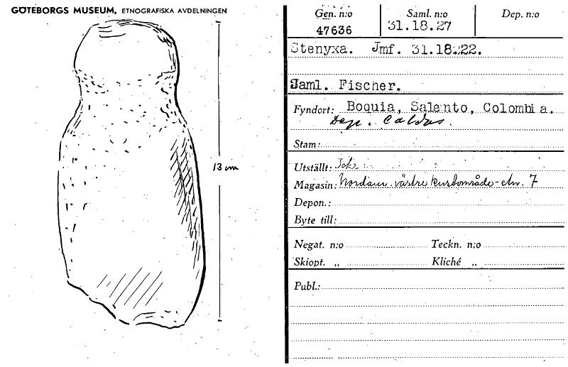 • GOTEBORGS MUSEUM, ETNOGRAFISKA AVDELNINGEN J i "4- Gen. n:o Saml. n:o Dep. n:o 47636 31.18.27 t e nyxa jmf . 18:.'` 2. aaml. Fischer. Fyndort: Boquia , Salemto i4g-irt Stam • Utställt • J 7- Magas... Visa hela