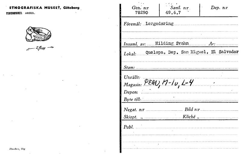 ETNOGRAFISKA MUSEET, Göteborg MEROMM1 ARKEOL - i • GOL n:r Saml. n:r. 78290 49.6.7 " Dep. n:r -2.74,77 Föremål: Ler.goclaring Insaml. av: Hilding Svahn Är: Lokal. Quelepa, Dep. San Miguel, i1 Salv...