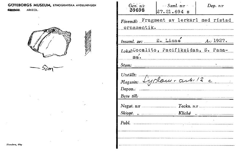 GOTEBORGS MUSEUM, ETNOGRAFISKA AVDELNINGEN Cht~. ARKEOL. Elamiera, Gbg GCn: .n:r 39 69 8 • - Saml. -n:r • 27..21.694 s Dep. n:r Föremål: Fragment av lerkärl med ristad ornamentik. , Insaml. av: S.. Linne Är: 1927. LokabCocalito „ Pacifiksidan, S. Paria- / ma. Stam: Utställt: Magasin: ry2emA( r a...1,-k r . / 2 c_ , Depon. Byte till: Negat. n:r Teckn. n:r Skiont. „ Kliché „ Publ. [ocr]