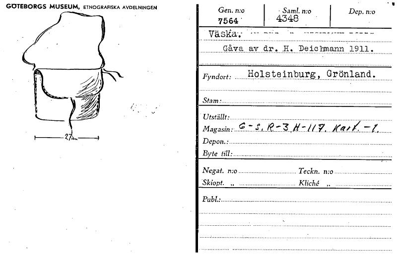 • • Saml. n:o 4348 Dep. n:o Utställt. Magasin: • Depon. : Byte till: - Gåva av dr. H. Deic1mann 1911. Fyndort: Holsteinburg, Grönland. Stam • Negat. n:o Teckn. n:o Skiopt. „ Kliché Publ.: GOTEBORGS M... Visa hela
