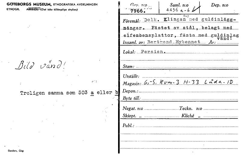 • Katalogkort ur Världskulturmuseets arkiv.
