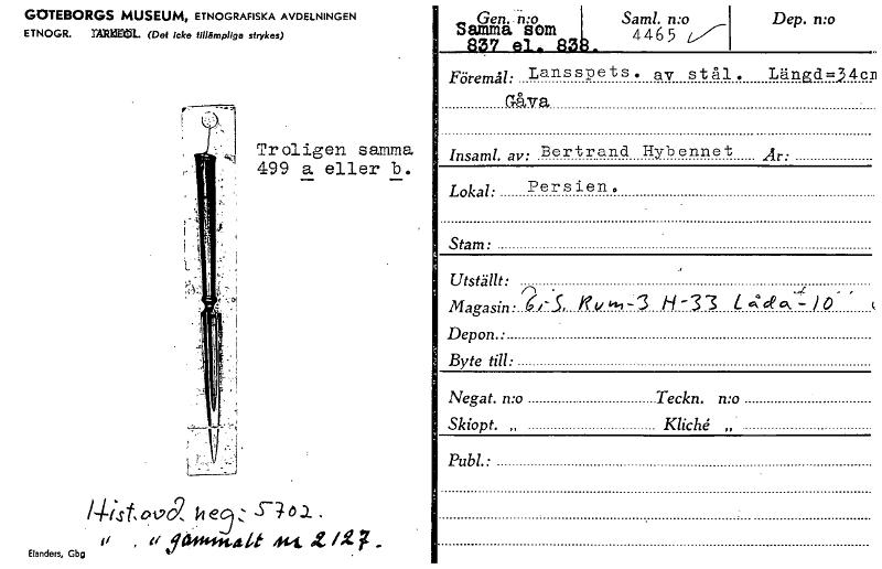GOTEBORGS MUSEUM, ETNOGRAFISKA AVDELNINGEN ETNOGR. l'ARIZUL (Det icke tillämpliga strykes) Troligen samma 499 a eller b. /4istov09, Elanders, Gbg , a ja att /- 7 _ Gen-mo Saml. n:o Srilli.37aeriA313. 4465 Dep. mo Föremål: Lansspets. av stål. Längd=34cm Gåva hmaml. av: Bertrand Hyb enne t År: Lokal: Persien. Stam: Utställt: Magasin • ?..i7I kf v kk, - 3 H -3 3 / .(;e0k Depon. • Byte till: /0 ( Negat. n:o Teckn. nx Skiopt. „ Kliché " Publ • [ocr]