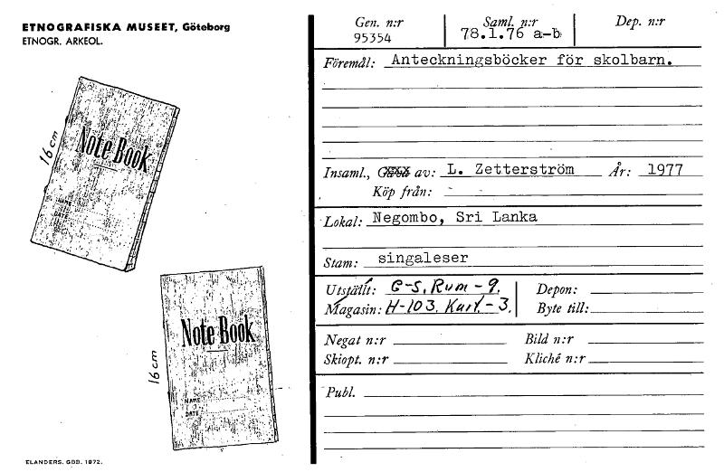 • ETNOGRAFISKA MUSEET, Göteborg ETNOGR. ARKEOL. ELANDERS.G1313.1972. Gen. n:r 95354 I 78.57_71115) Dep. n:r Föremål- Anteckningsböcker för skolbarn. Imam/GAJ av: L. Zetterström År: 1977 ., Köp från: - -... Visa hela