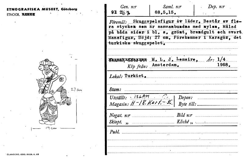 • Katalogkort ur Världskulturmuseets arkiv.
