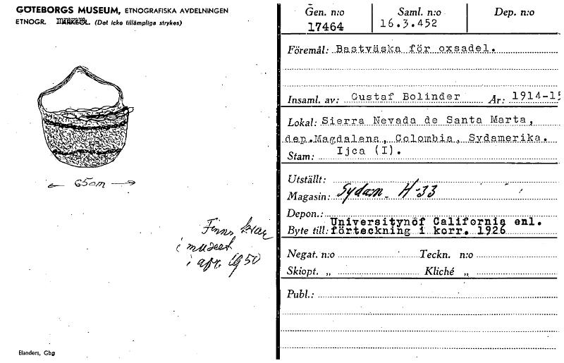 GOTEBORGS MUSEUM, ETNOGRAFISKA AVDELNINGEN ETNOGR. Inä". (Det icke tillämpliga strykas) C6å,-77 _ 22-,..e6.2.0~ ; vt, y Elanders, Gbg - - Gen. n:o 17464 1 Saml. n:o 16.3.452 i Dep. n:o Föremål: .B.aatväska för oxsadel. Insaml. av: Gustaf Bolinder Ar: 1914-1! Lokal: Sierra Nevada de San.ta Marta 2 ..d.e.-.Q. 0.M a e' d are na . > C 0 1 Q.Tab i a > Sydamerika. Ijca (I). Stam: Utställt: Magasin: fri4V1- 7:11 ,, Depon.: Universitynöf Californig enl. Byte till: förte.ekning....i...karr.....1.9.2.6 Negat.'n:o « Teckn. n:o Skiopt. „ KlicU ,, Publ.• [ocr]