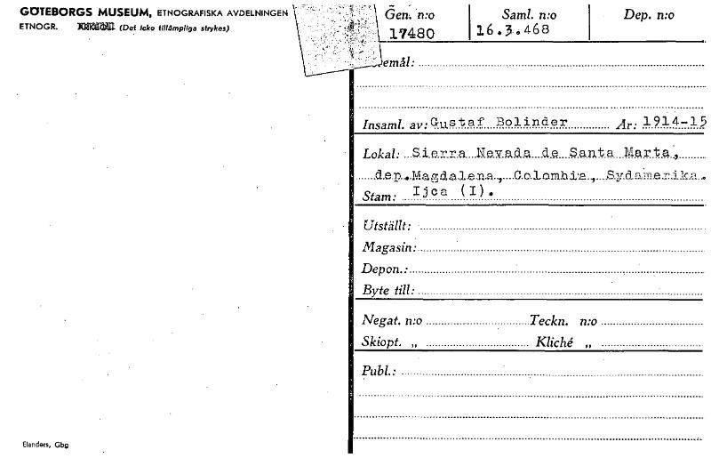 • Katalogkort ur Världskulturmuseets arkiv.