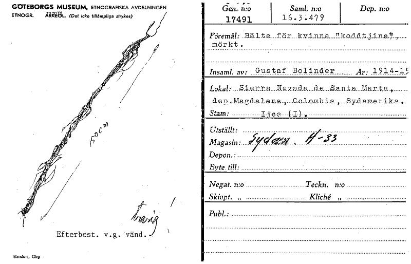Efterbest. v. . vänd. Elanders, Gbg • den: n- ro 17491 Saml. n:o i 16 . 3 . 479 Dep. n:o Föremål: ..B.älte...f...ör....kv..i.nna "ko.d.d.t.2 i n.a.t! , mörkt . , Insaml. av: Gustaf Bolinder År; 1914-15 Lokal:- . S i.e r.r a. Nevnde de S a.nt a Mer.I.D.., ....d.e.p..Ma.g..d.a.le.na..,....C.o.3..olub.i.a.,....Sy.d.ame.r.i.kp...., Stam: I 5. -c 2 ( iy . utställt:. ' ,--or,3 • Magasin: e5-ff ej« -. Depon.: Byte. till: Negat. n:o Teckn. n:o Skiopt. „ KlicU „ , Publ • , GOTEBORGS MUSEUM, ETNOGRAFISKA AVDELNINGEN ETNOGR. Alifft. (Det icke tillämpliga strykes) [ocr]