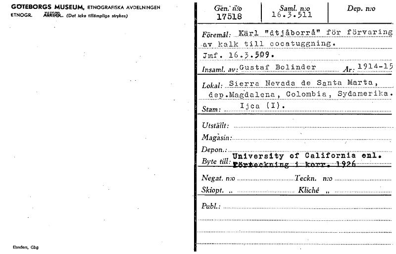 • Katalogkort ur Världskulturmuseets arkiv.