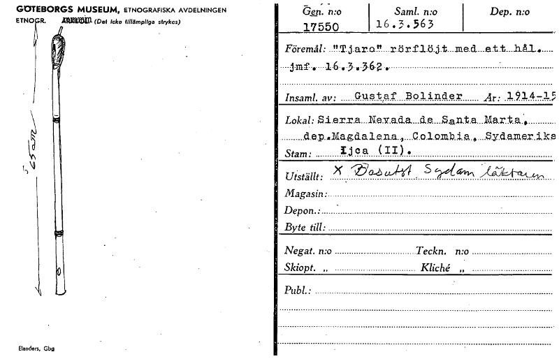 • GOTEBORGS MUSEUM, ETNOGRAFISKA AVDELNINGEN ETNO R. Milöttl. (Det icke tillämpliga strykas) Elandars, Gbg Gen. n:o 17550 Saml. n:o 16.3.563 Dep. n:o Föremål: " Ti.aro." r ö rfl.ö.j.t. ..me.d. .att. ... Visa hela