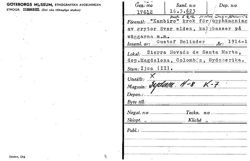 • Katalogkort ur Världskulturmuseets arkiv.