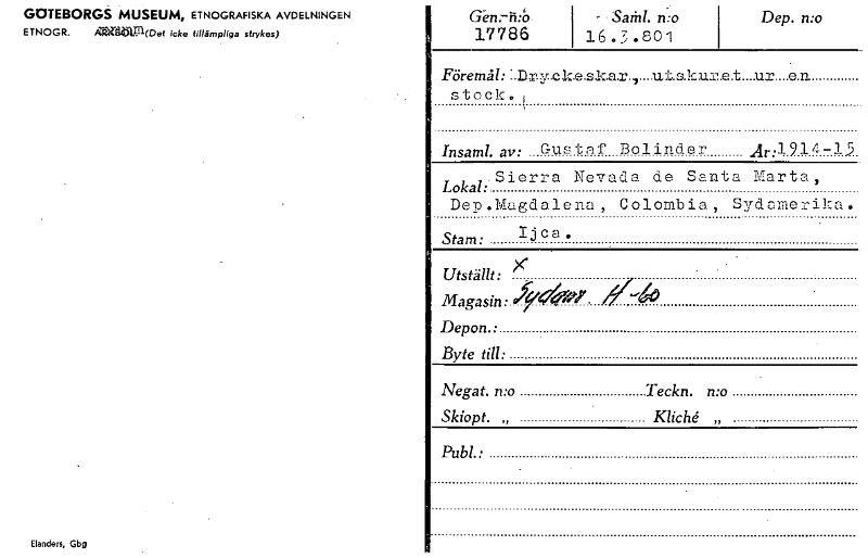 • GOTEBORGS MUSEUM, ETNOGRAFISKA AVDELNINGEN ETNOGR. ighlbsät—M(Det icke tillämpliga strykas) Canden, Gbg Gen.--Kö. 17786 - . SaMl. n:o 16...8o1 Dep. mo Föremål: :.Drycic..e.s.k.a.r..,....ut.s.km.3.-..e... Visa hela