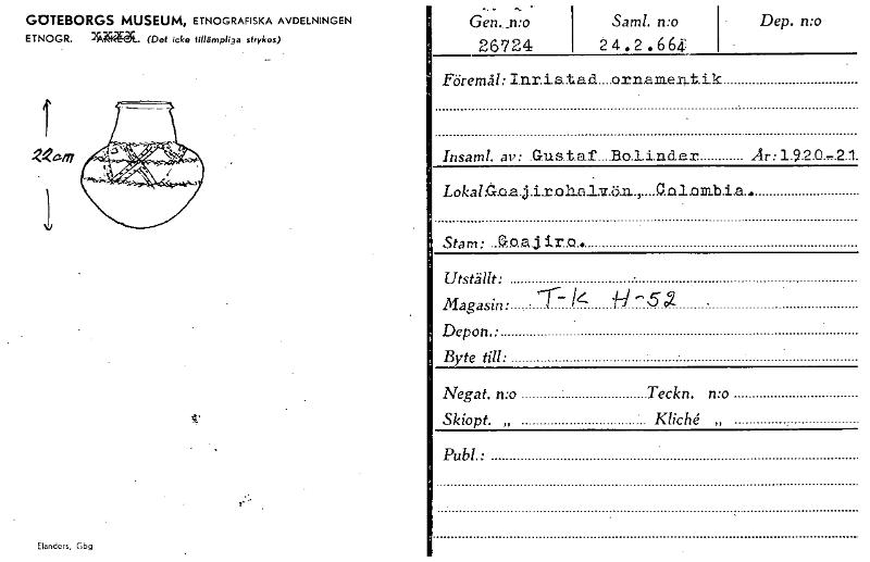 • Katalogkort ur Världskulturmuseets arkiv.