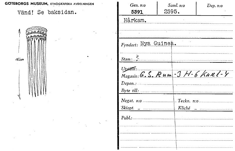 • Katalogkort ur Världskulturmuseets arkiv.