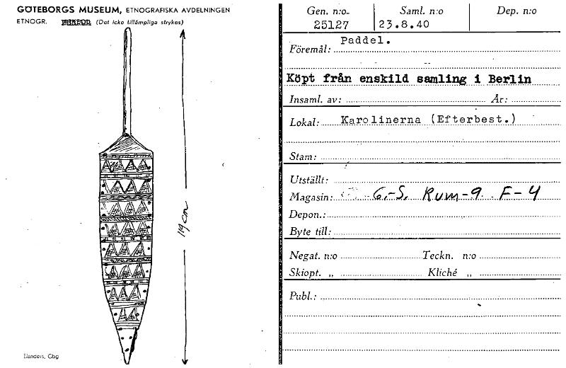 • Gen. n:o- 25127 Saml. n:o 23.8.40 Dep. n:o paddel. Föremål: Köpt från enskild samling i Berlin Insaml. av: Är: Lokal:. Karolinerna (Efterbest.) Stam: Utställt: Magasin: c '''' , •- 67(7 ..e if... Visa hela
