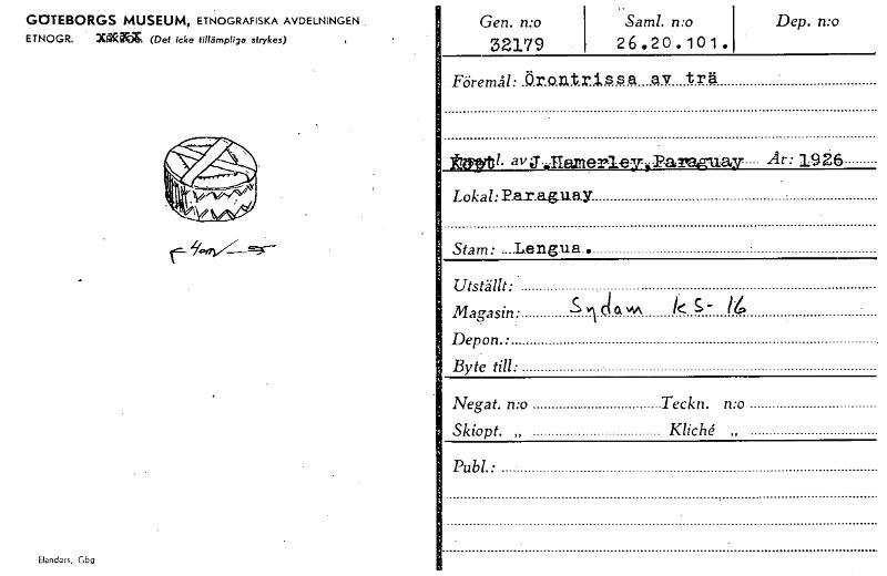 • GOTEBORGS MUSEUM, ETNOGRAFISKA AVDELNINGEN ETNOGR. Xrna (Det Icke tillämpliga sfrykes) fooxvz---"" Elanders. Gbg Gen. n:o 32179 Samt. n:o 26.20.101. Dep. n:o Föremg:ji=trissa av trä kintl. av T wliarn... Visa hela