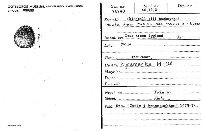 GOTEBORGS MUSEUM, ETNOGRAFISKA AVDELNINGEN ETNOGR. ~al Mandel., G19 Gen. n:r 7 67 40 Saml. n:r 46 .19 .3 Dep. n:r Föremål: Skinnboll till hockeyapel Pet.o -k-ta PA2A 3.0 e 6-0 ,De-L 'ria L.∎ Ni 4> cl, ucca • Ivar A: son Igglund Insaml. av Är. Lokal: Chile Stam: Araukaner , Utställt: ågdailli eir i k..,3, M - as Magasin: Depon. - Byte till: Ålegat n:r Teckn n:r Skiopt. „ Kliché. „ Publ.. Uts• "Chile i brännpunkten" 1973-74 [ocr]