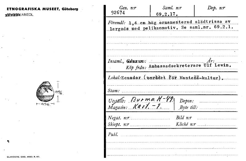 • Katalogkort ur Världskulturmuseets arkiv.