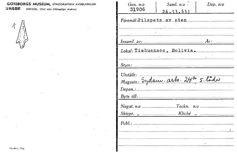 • Katalogkort ur Världskulturmuseets arkiv.