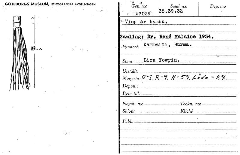GOTEBORGS MUSEUM, ETNOGRAFISKA AVDELNINGEN i'-ta - . en. n:o . . 5 Sam!. n:o 7039'5 .39 .32 -'- Visp av bambu. Samling:- C. Rend Malaiee Fyndort: KaMbaiti, Burma, Stam • Utställt • Magasin: G'S., R -...